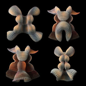 I love experimenting with anamorphic design principles because not only do forms change by altering your viewing angle, but manipulation of the form opens up new visual effects. Surfaces become electric with changing hues.